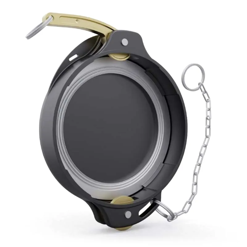 Nắp được trang bị vòng đệm kín bên trong (làm từ cao su NBR hoặc Viton tùy theo kiểu máy) để đảm bảo độ kín tuyệt đối, ngăn rò rỉ nhiên liệu dư và duy trì áp suất an toàn khi hệ thống không hoạt động. Một sợi xích bằng inox được gắn sẵn giúp cố định nắp vào xe bồn, đồng thời các lỗ khóa tích hợp cho phép sử dụng niêm phong chống giả nếu cần.